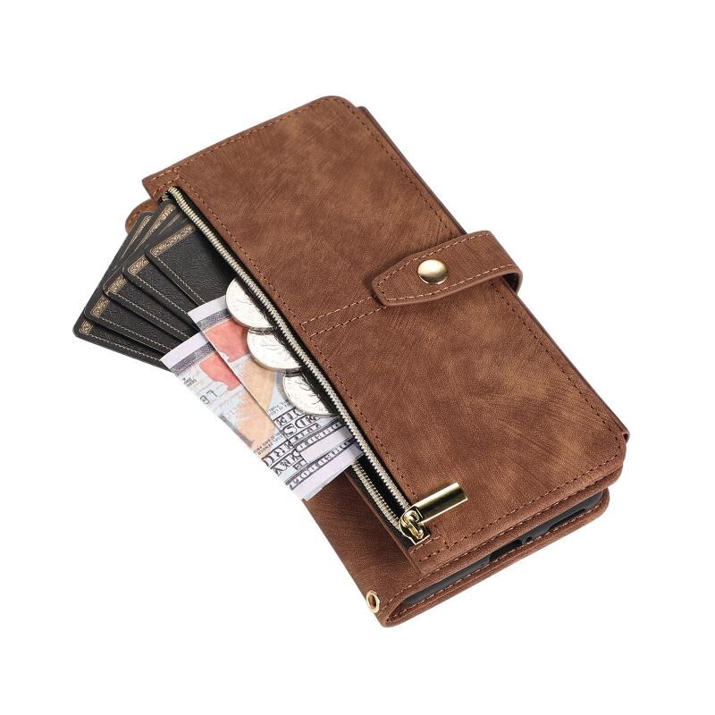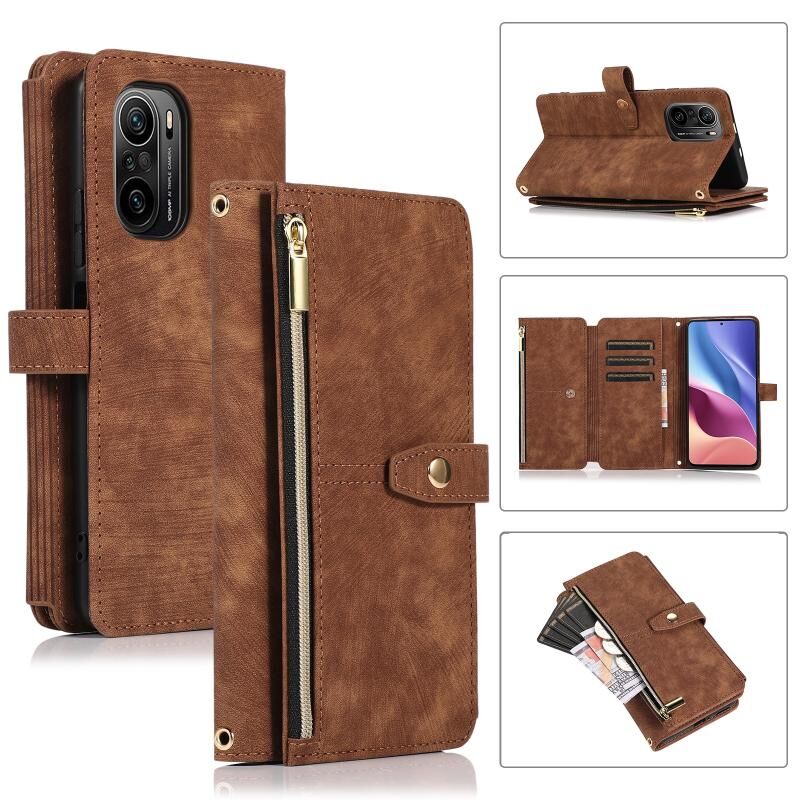 Για Xiaomi Redmi K40 Dream 9-κάρτα πορτοφόλι φερμουάρ τσάντα δερμάτινη θήκη τηλεφώνου (καφέ)