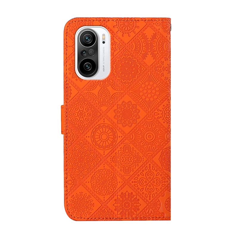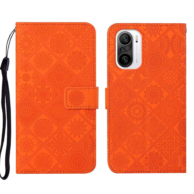 For Xiaomi Redmi K40 Ethnic Style Embossed Pattern Leather Phone Case(Orange)