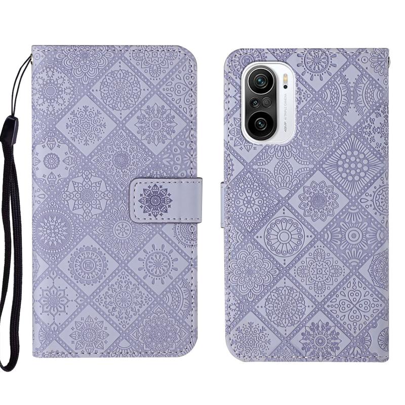 For Xiaomi Redmi K40 Ethnic Style Embossed Pattern Leather Phone Case(Purple)