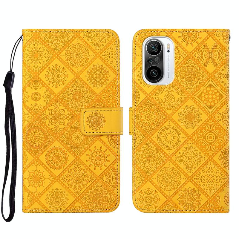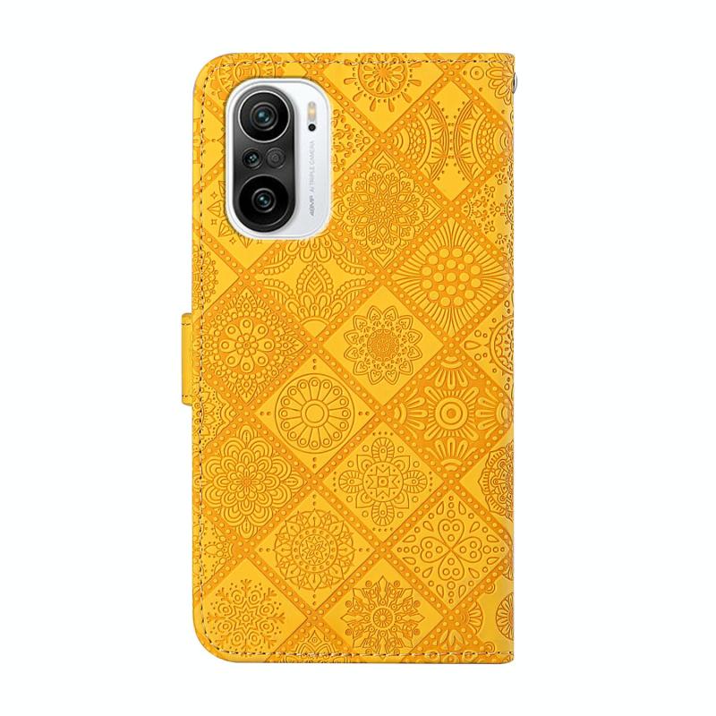 For Xiaomi Redmi K40 Ethnic Style Embossed Pattern Leather Phone Case(Yellow)