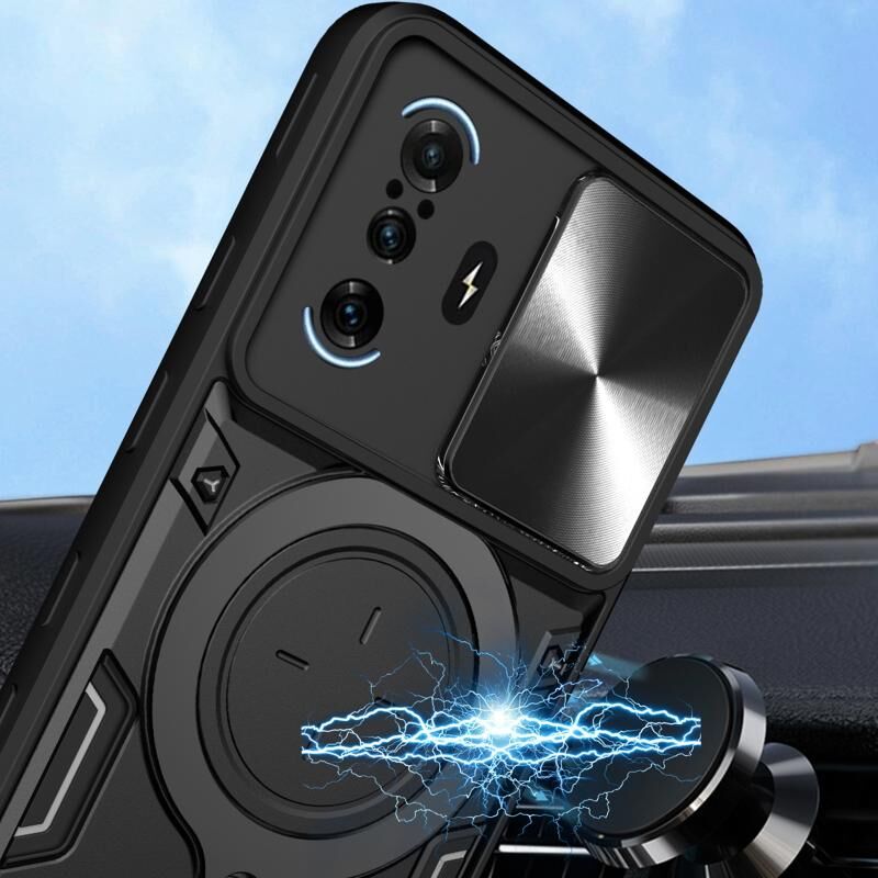 Θήκη τηλεφώνου για Xiaomi Redmi K40 Gaming με υφή CD, συρόμενο προστατευτικό κάμερας και μαγνητική βάση (Ροζ)