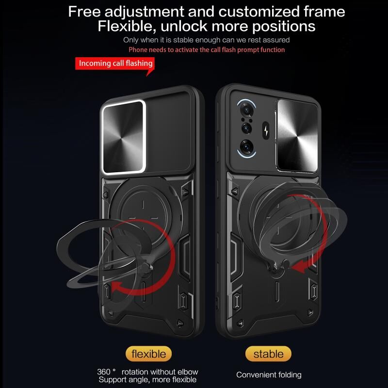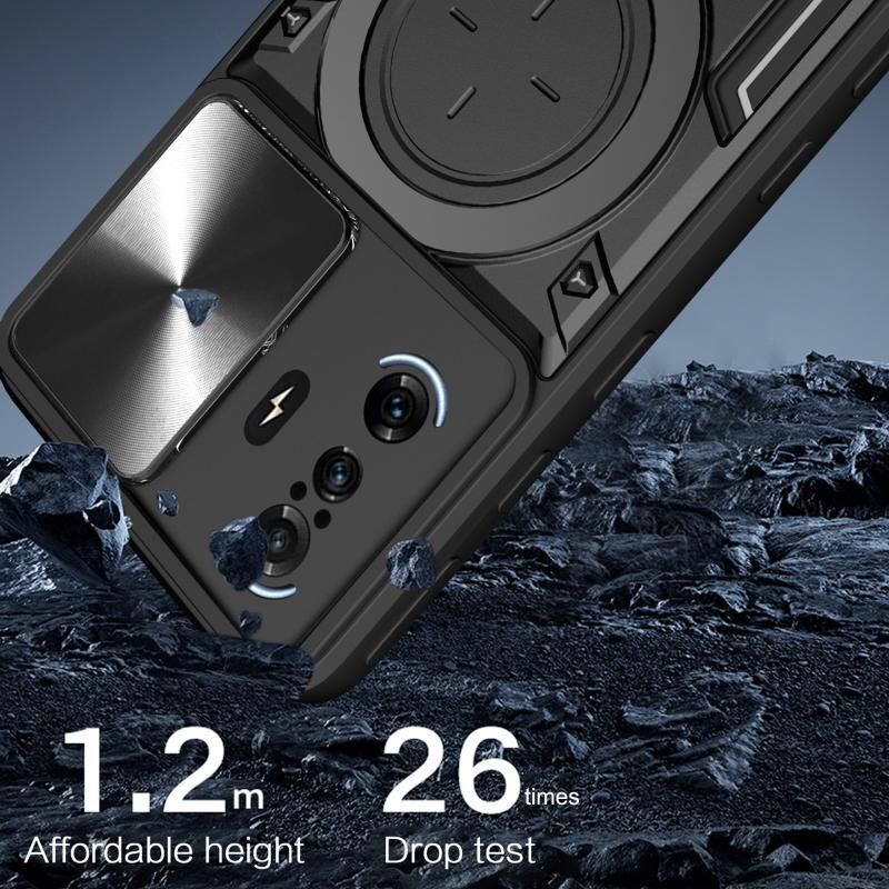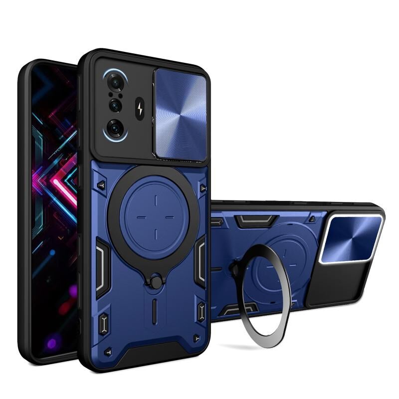Θήκη τηλεφώνου για Xiaomi Redmi K40 Gaming με υφή CD, συρόμενο προστατευτικό κάμερας και μαγνητική βάση (Μπλε)
