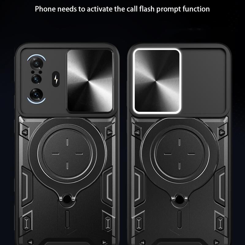 Θήκη τηλεφώνου για Xiaomi Redmi K40 Gaming με υφή CD, συρόμενο προστατευτικό κάμερας και μαγνητική βάση (Ροζ)