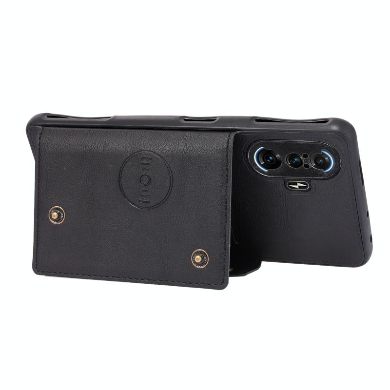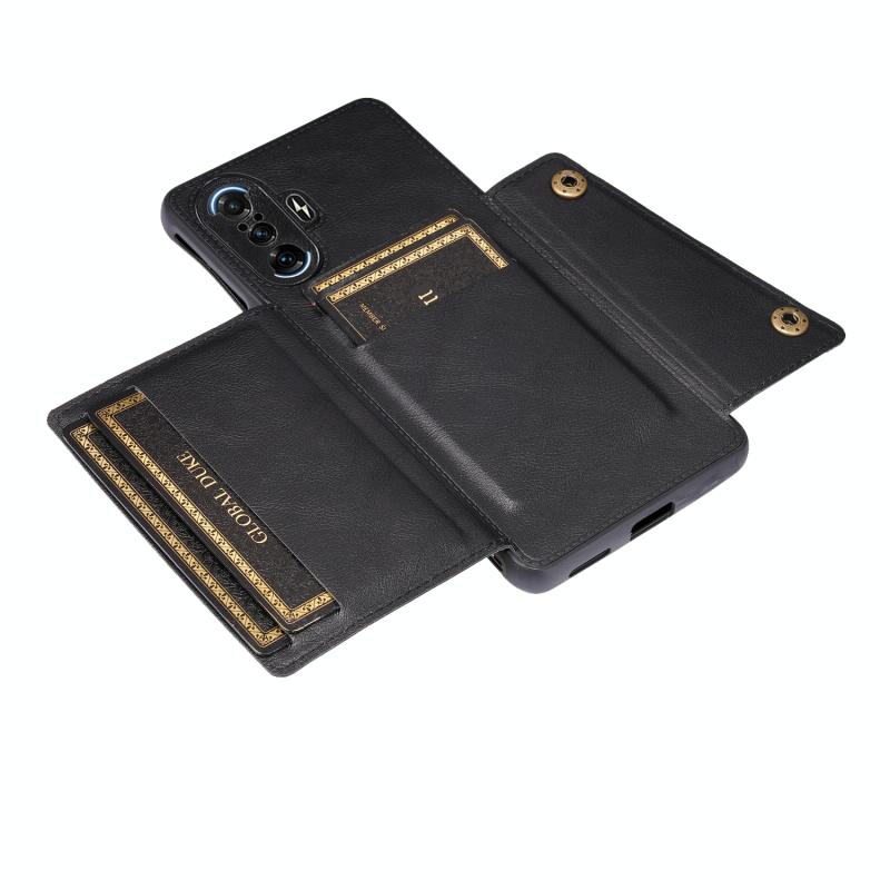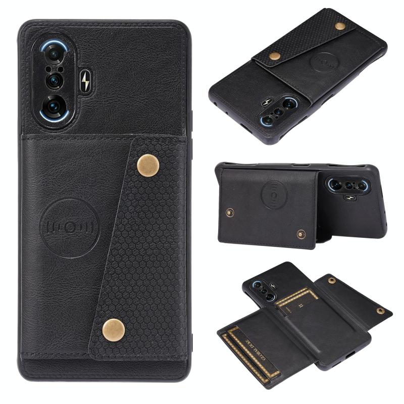 For Xiaomi Redmi K40 Gaming Double Buckle PU + TPU Shockproof Magnetic Protective Case with Card Slot & Holder(Black)