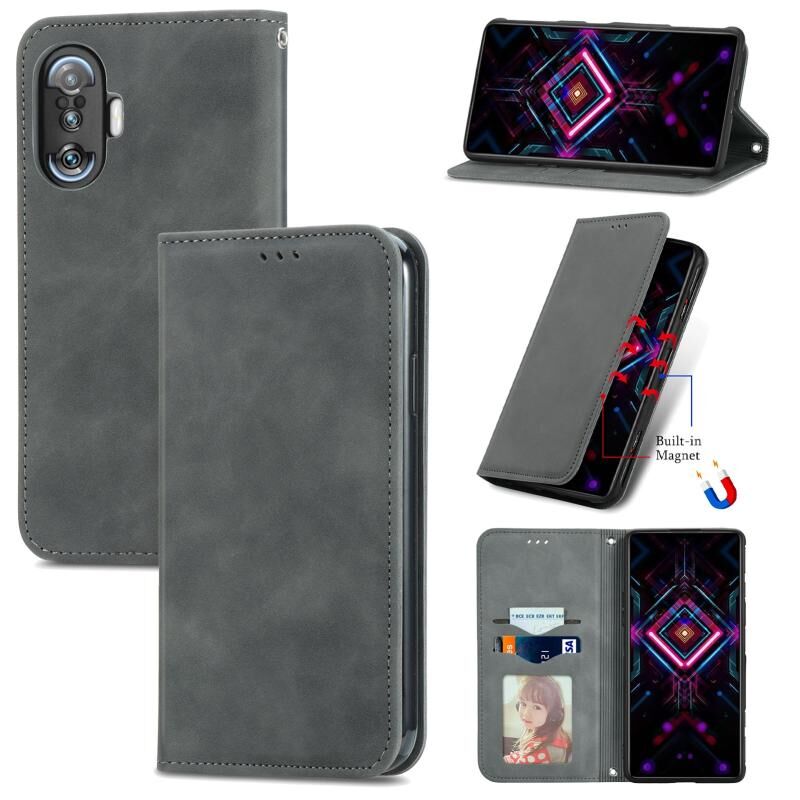 Για Xiaomi Redmi K40 Gaming Retro Skin Feel Business μαγνητική οριζόντια Flip δερμάτινη θήκη με υποδοχή & υποδοχές καρτών & πορτοφόλι & πλαίσιο φωτογραφιών (γκρι)