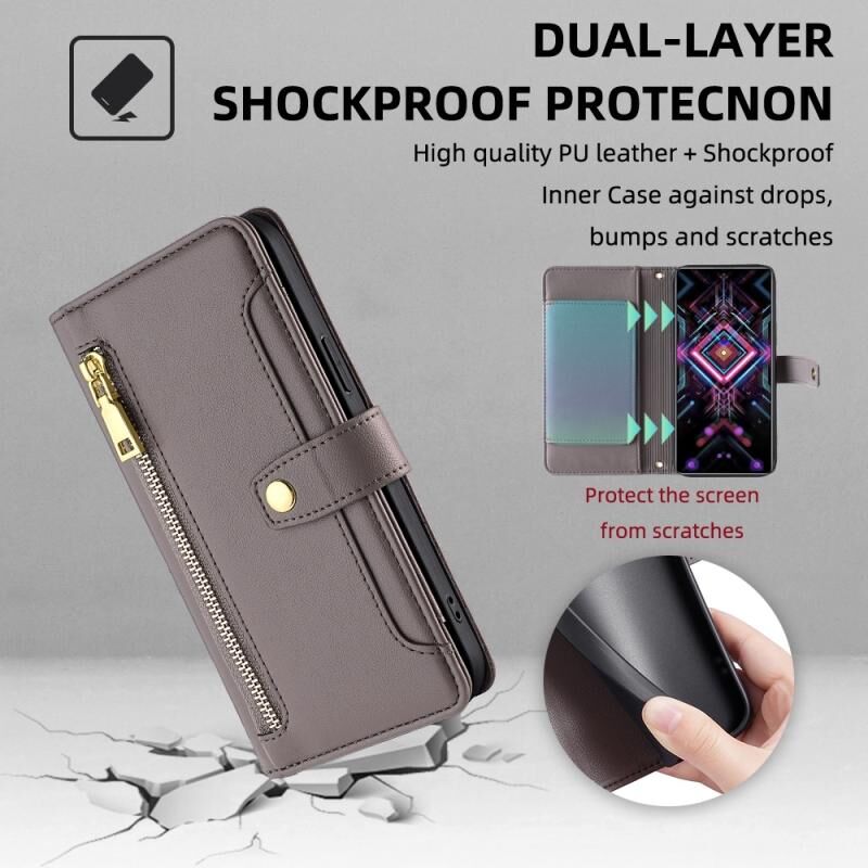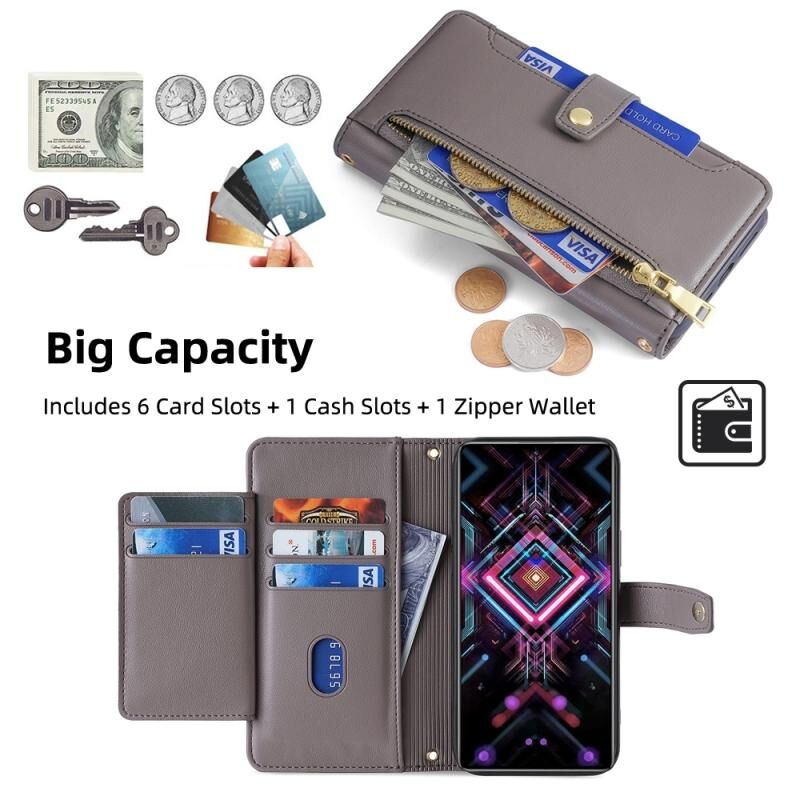 2. Λειτουργία πορτοφολιού πολλαπλών καρτών: Θήκες για κάρτες και διαμέρισμα με φερμουάρ για την αποθήκευση των πιστωτικών σας καρτών, μετρητών ή μικρών σημειώσεων για καθημερινή χρήση.