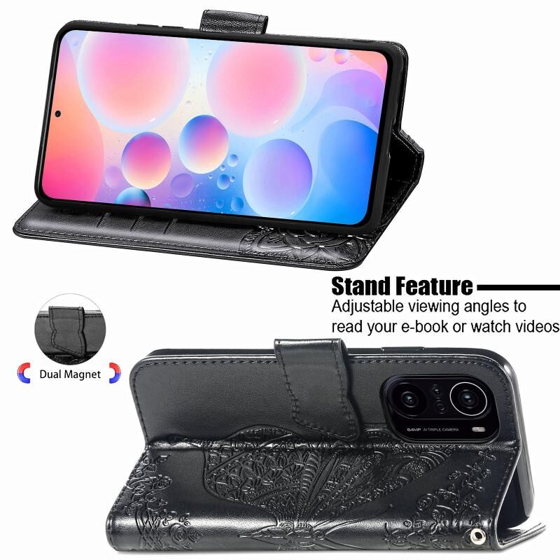 Για Xiaomi Redmi K40 /K40 Pro /K40 Pro + Πεταλούδα αγάπη λουλούδια ανάγλυφο οριζόντια Flip δερμάτινη θήκη με κάτοχο & υποδοχές καρτών & πορτοφόλι & κορδόνι (μαύρο)