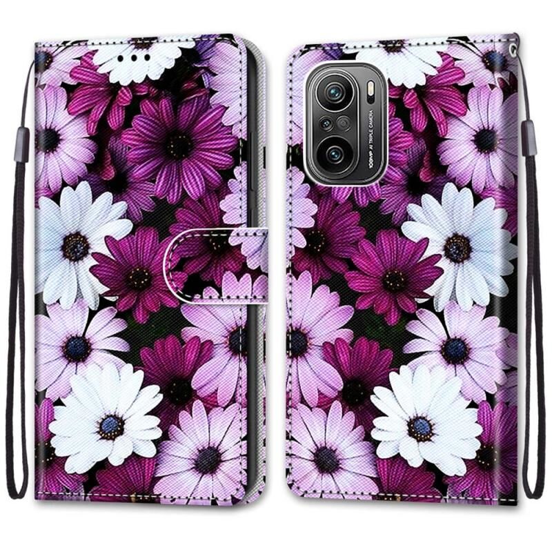 Θήκη δέρματος PU με οριζόντιο άνοιγμα για Xiaomi Redmi K40 / K40 Pro / K40 Pro+ με πολύχρωμο σχέδιο, ανάγλυφη υφή, βάση στήριξης, θήκες για κάρτες, πορτοφόλι και κορδόνι (Lime Green). (Ροζ λευκό μοβ χρυσάνθεμου)