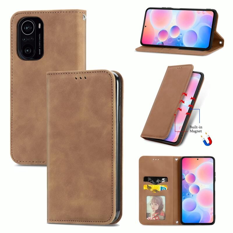 Για Xiaomi Redmi K40 / K40 Pro / K40 Pro + Ρετρό δέρμα αίσθηση Business μαγνητική οριζόντια Flip δερμάτινη θήκη με κάτοχο & υποδοχές καρτών & πορτοφόλι & πλαίσιο φωτογραφιών (καφέ)