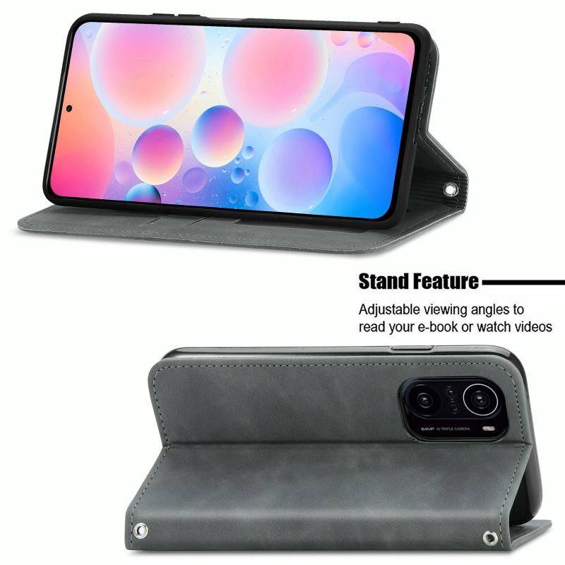 Για Xiaomi Redmi K40 / K40 Pro / K40 Pro + Retro δέρμα αίσθηση επιχείρηση μαγνητική οριζόντια Flip δερμάτινη θήκη με κάτοχο & υποδοχές καρτών & πορτοφόλι & πλαίσιο φωτογραφιών (γκρι)
