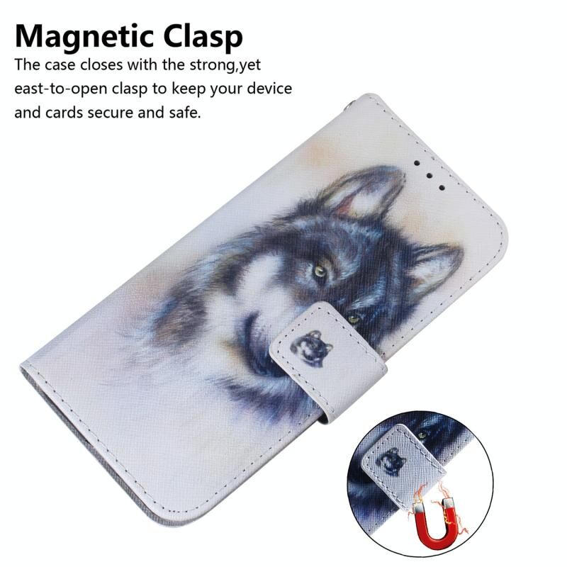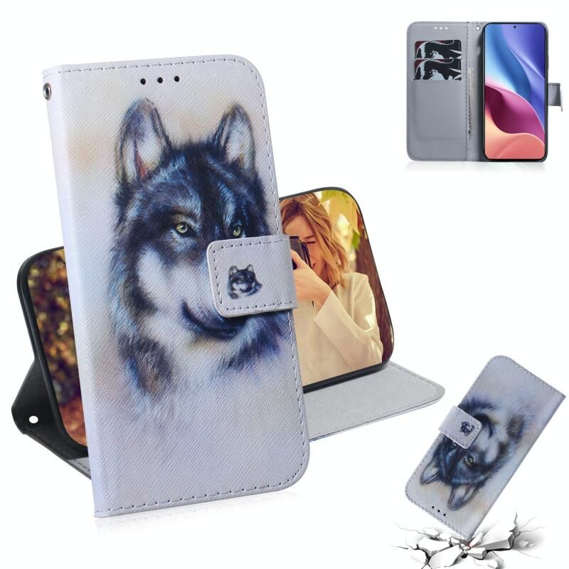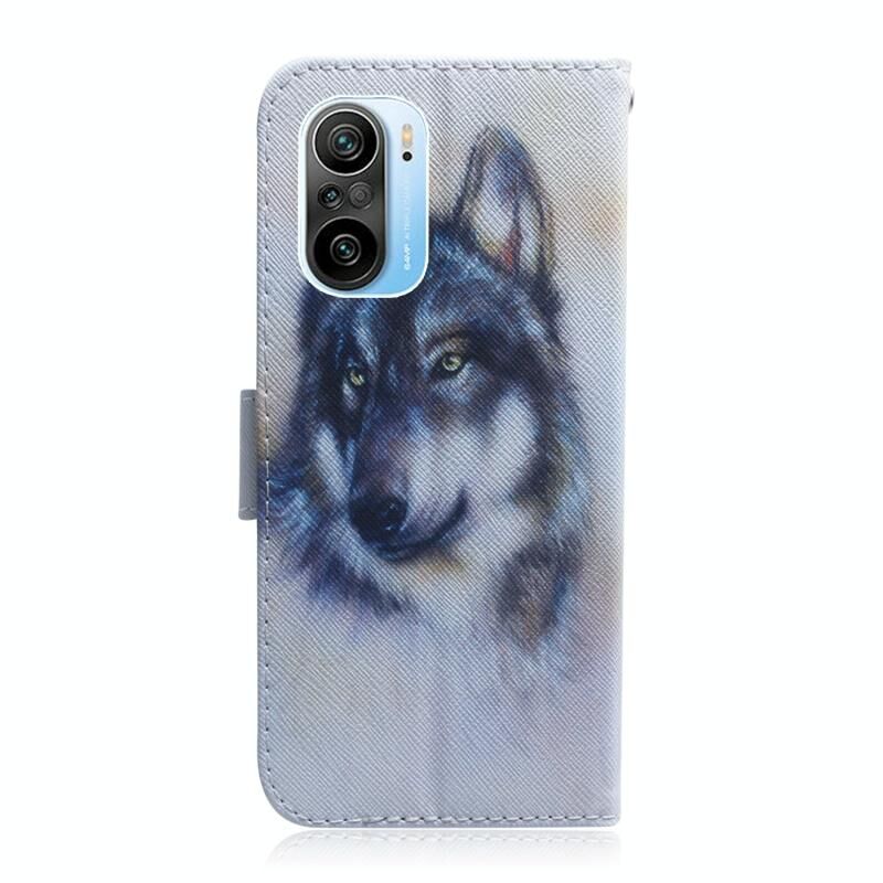 Θήκη δέρματος οριζόντιας αναδίπλωσης με σχέδια και χρώματα για Xiaomi Redmi K40 / K40 Pro / Poco F3, με βάση & υποδοχές καρτών & πορτοφόλι (Λευκός Λύκος)