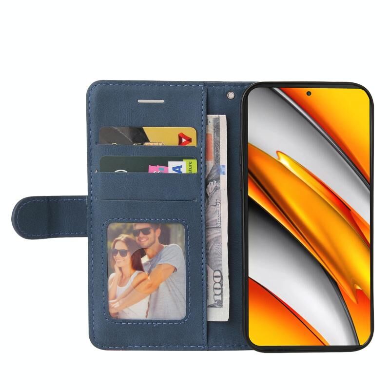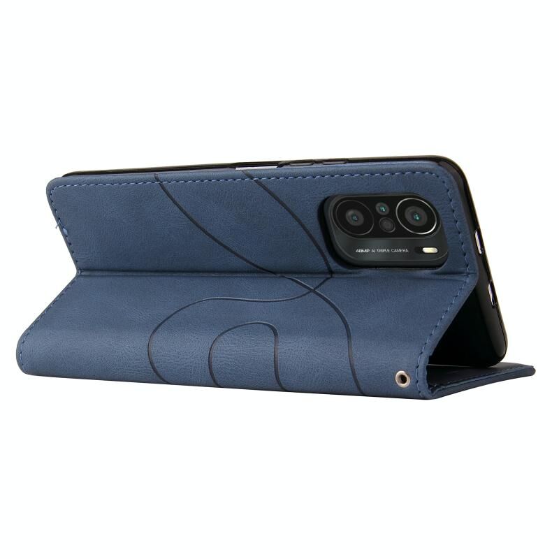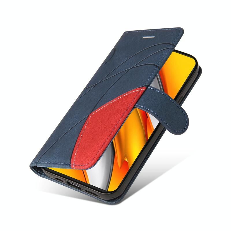 Για Xiaomi Redmi K40 / K40 Pro / Poco F3 Διπλό χρώμα Splicing οριζόντια Flip PU δέρμα υπόθεση με θήκη & υποδοχές καρτών & πορτοφόλι (μπλε)