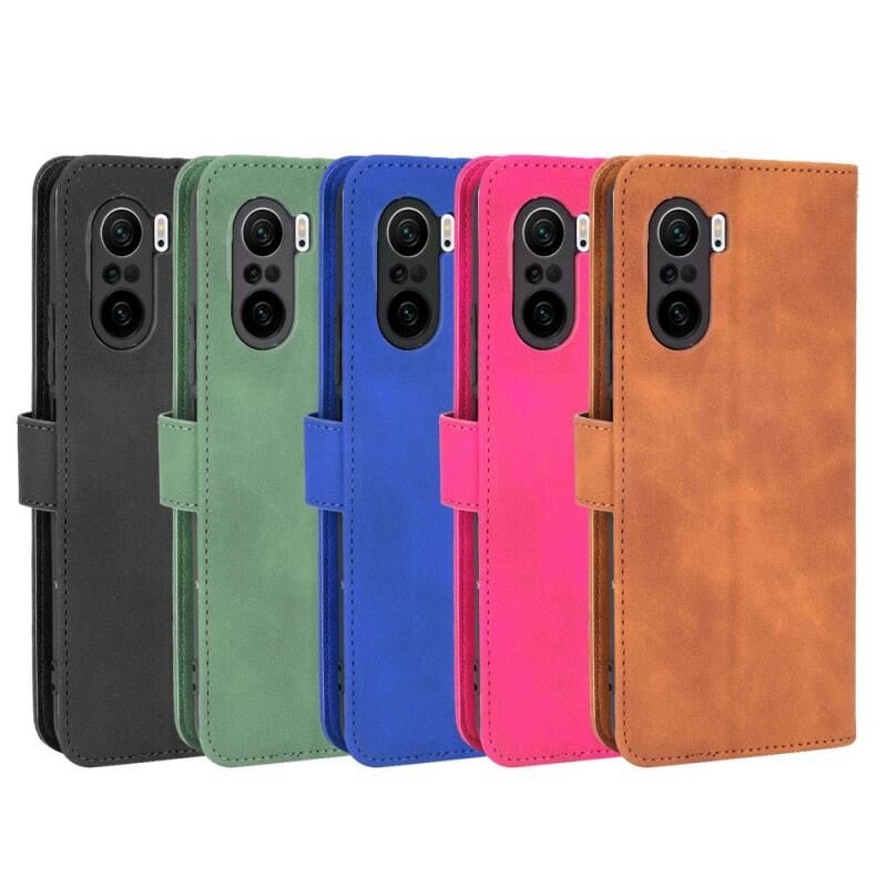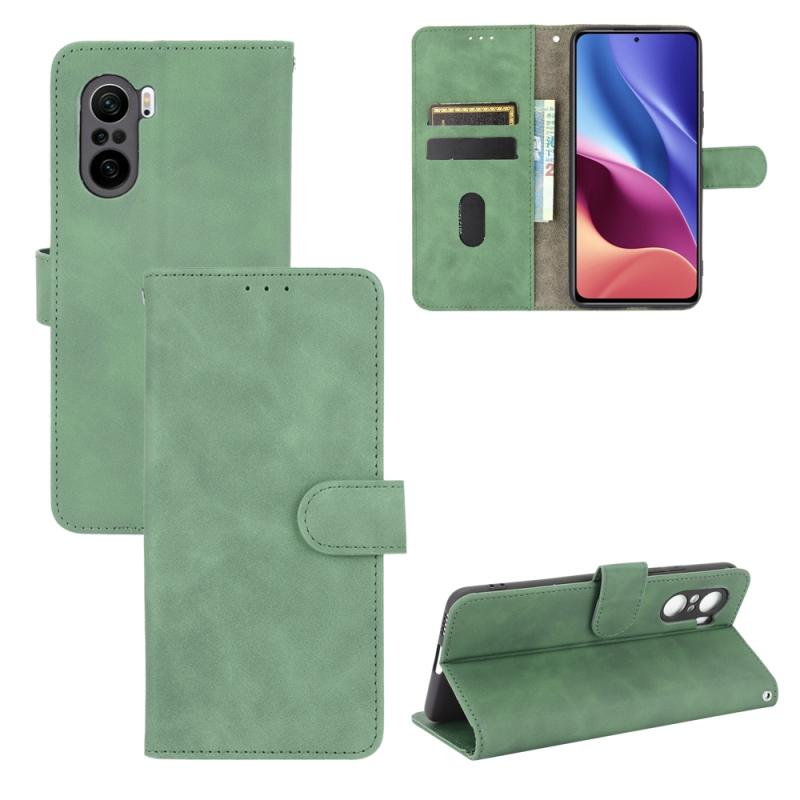Θήκη για Xiaomi Redmi K40 / K40 Pro με μαγνητικό κούμπωμα, οριζόντια, με υφή μοσχαρίσιου δέρματος PU, σε μονόχρωμο χρώμα, με βάση στήριξης & θήκες για κάρτες & πορτοφόλι (πράσινο)