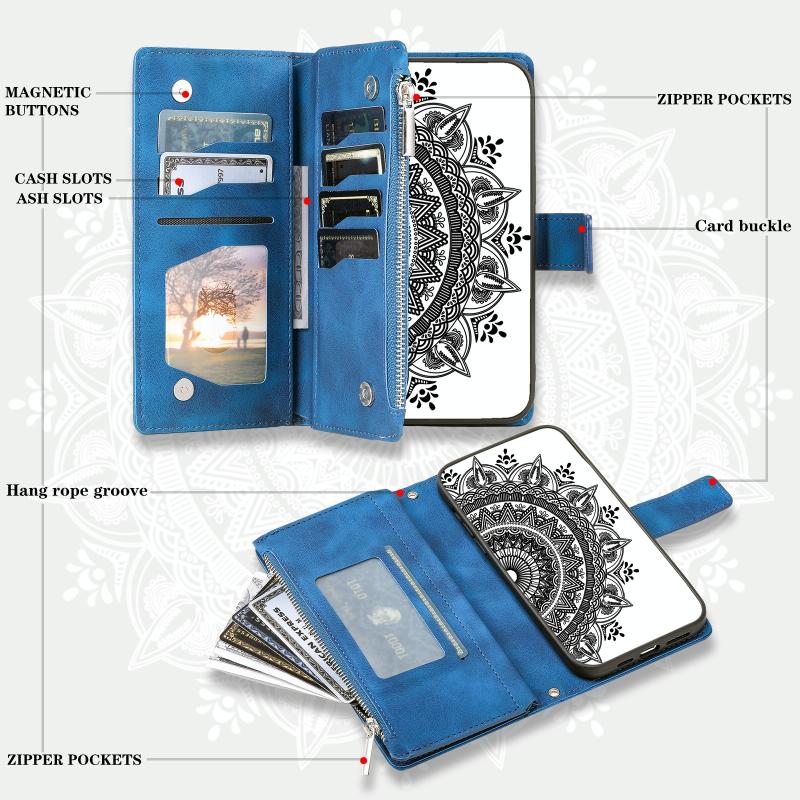 5. Πρακτική λειτουργία θήκης καρτών: Η θήκη καρτών και η τσέπη πορτοφολιού με φερμουάρ και το διαμέρισμα για μετρητά μπορούν να αποθηκεύσουν τις πιστωτικές σας κάρτες, μετρητά ή μικρά χαρτονομίσματα που χρειάζεστε καθημερινά.