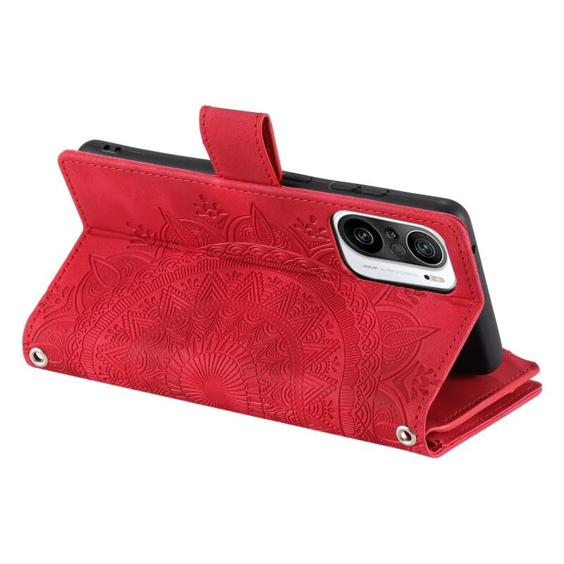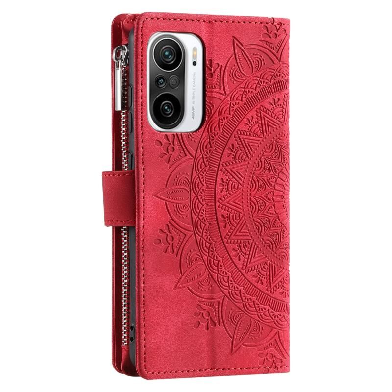 Για Xiaomi Redmi K40 Multi-Card Totem φερμουάρ δερμάτινη θήκη τηλεφώνου (κόκκινο)