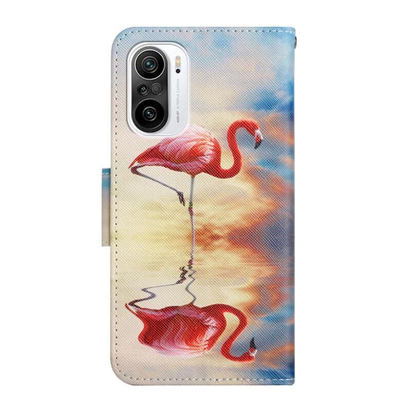Θήκη τηλεφώνου από δέρμα με σχέδιο φλιμίνγκο για Xiaomi Redmi K40 (βαμμένο σχέδιο, flip)