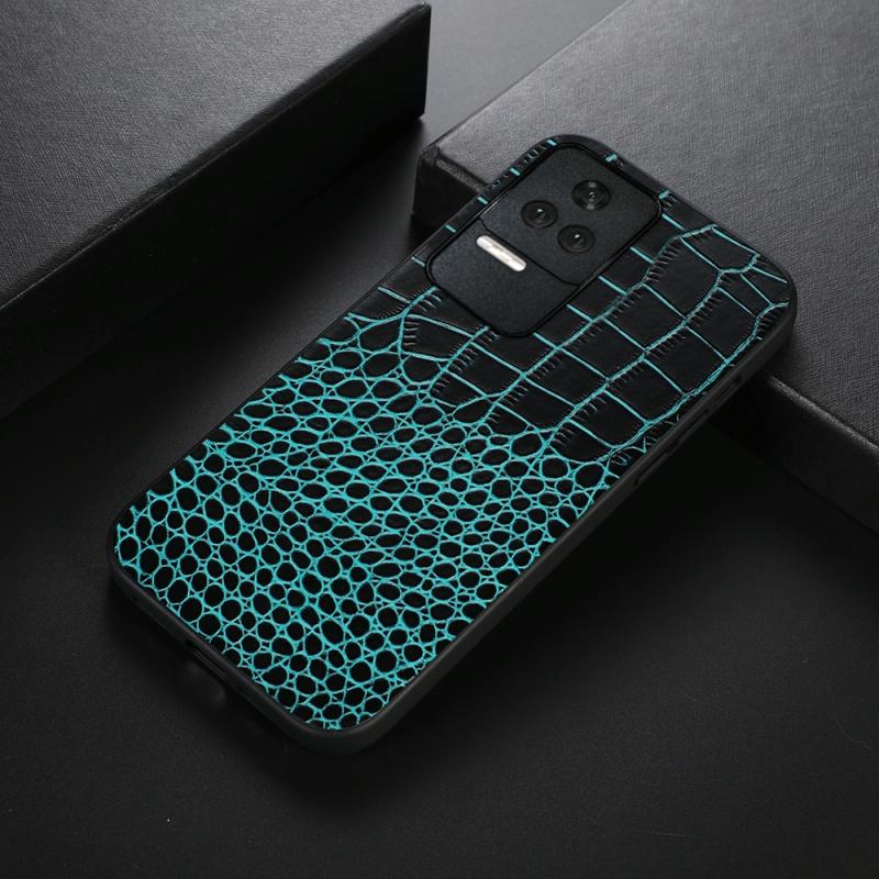 Θήκη δερμάτινη για Xiaomi Redmi K40S 5G από γνήσιο δέρμα κροκόδειλου (Κυανό Μπλε)