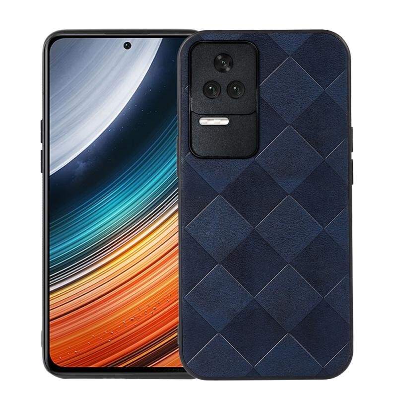Για Xiaomi Redmi K40S 5G Weave καρό PU υπόθεση τηλεφώνου (μπλε)