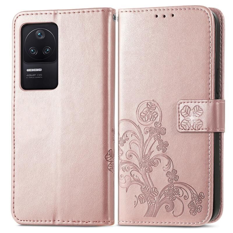 Για Xiaomi Redmi K40S τετράφυλλο κούμπωμα ανάγλυφο αγκράφα δερμάτινη θήκη τηλεφώνου (Rose Gold)