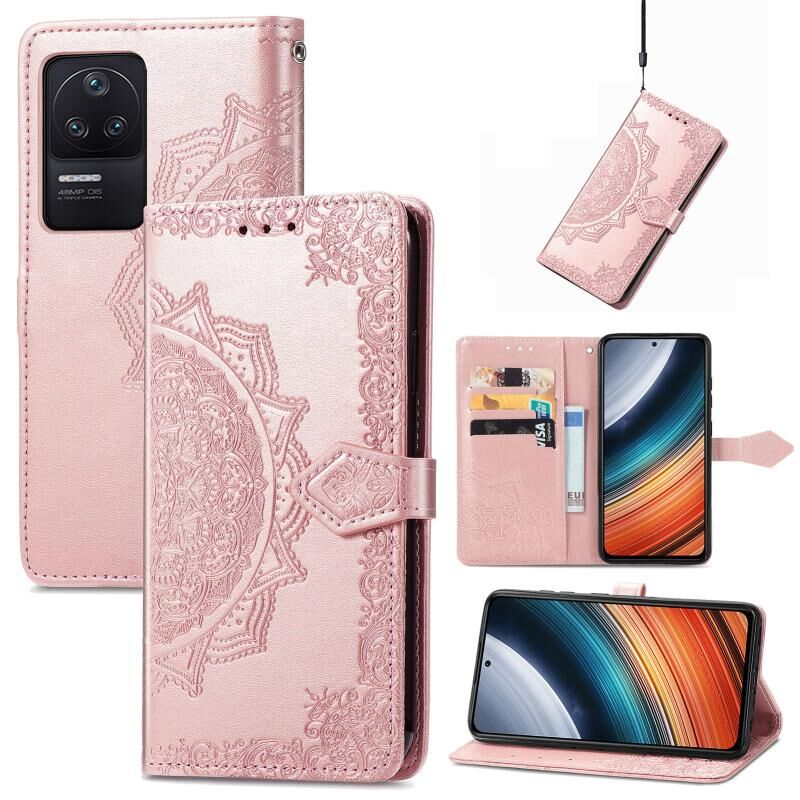 Για Xiaomi Redmi K40S Mandala λουλούδι ανάγλυφο δερμάτινη θήκη τηλεφώνου (Rose Gold)