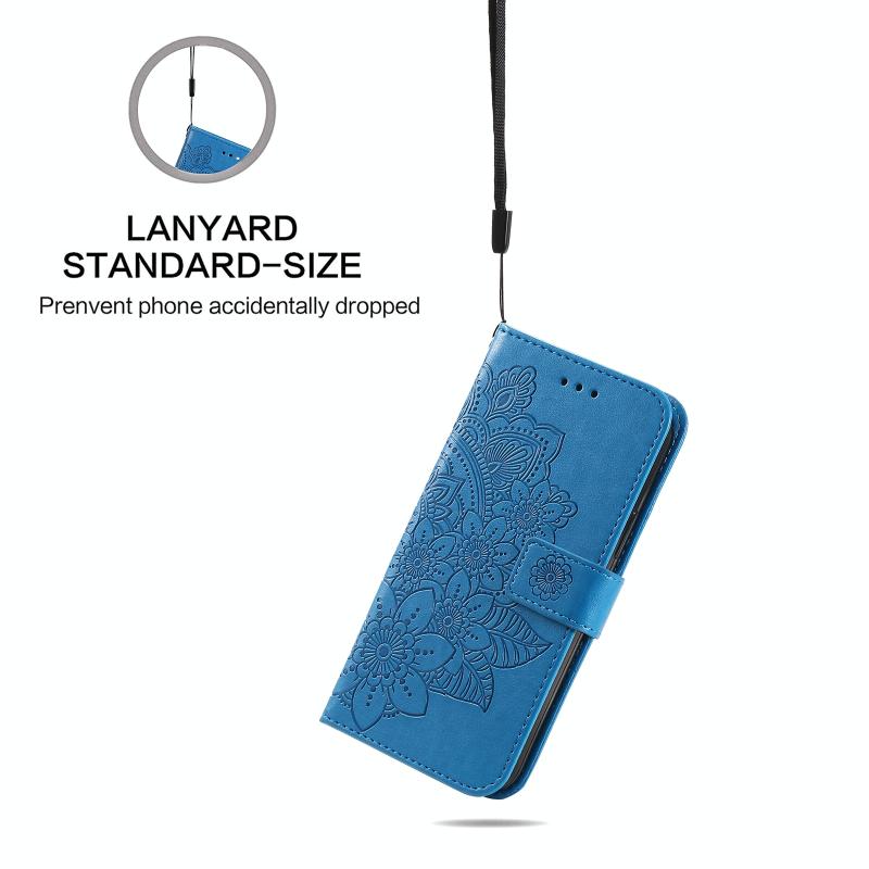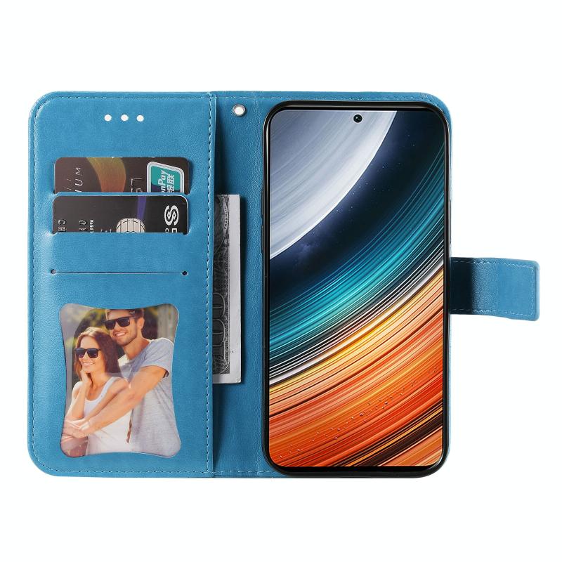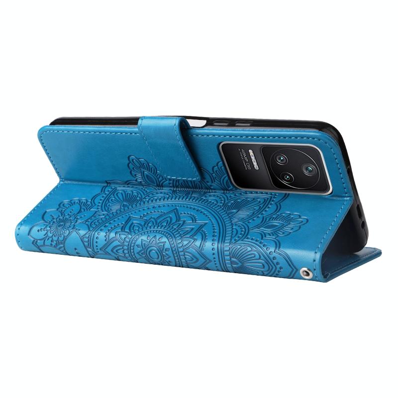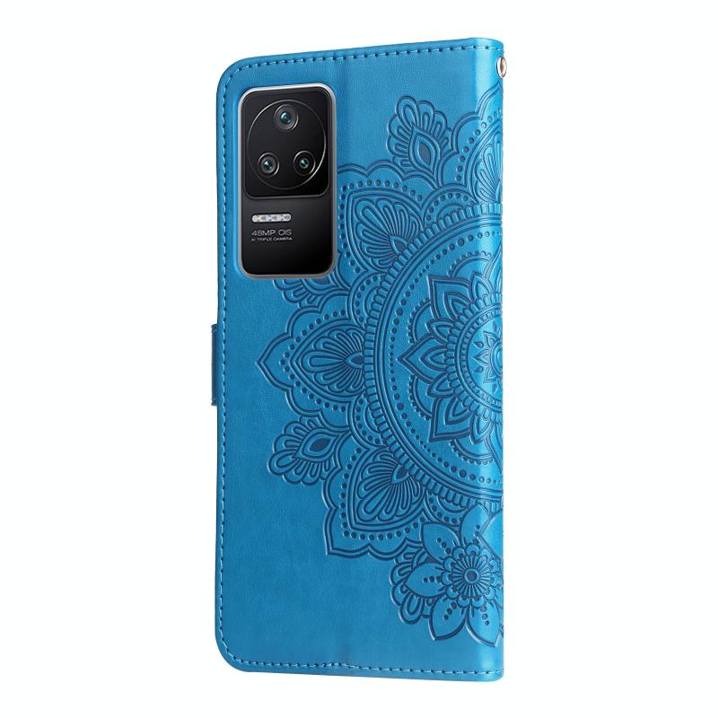 Θήκη δέρματος με ανάγλυφα λουλούδια 7 πετάλων για Xiaomi Redmi K40S / Poco F4 (Μπλε)