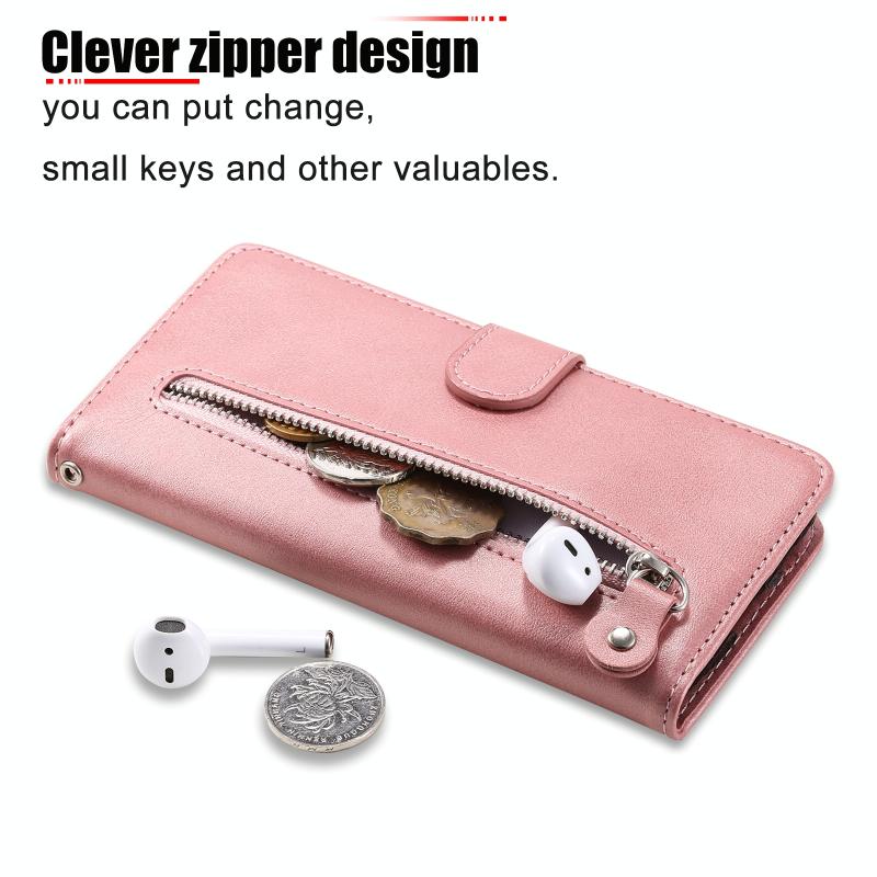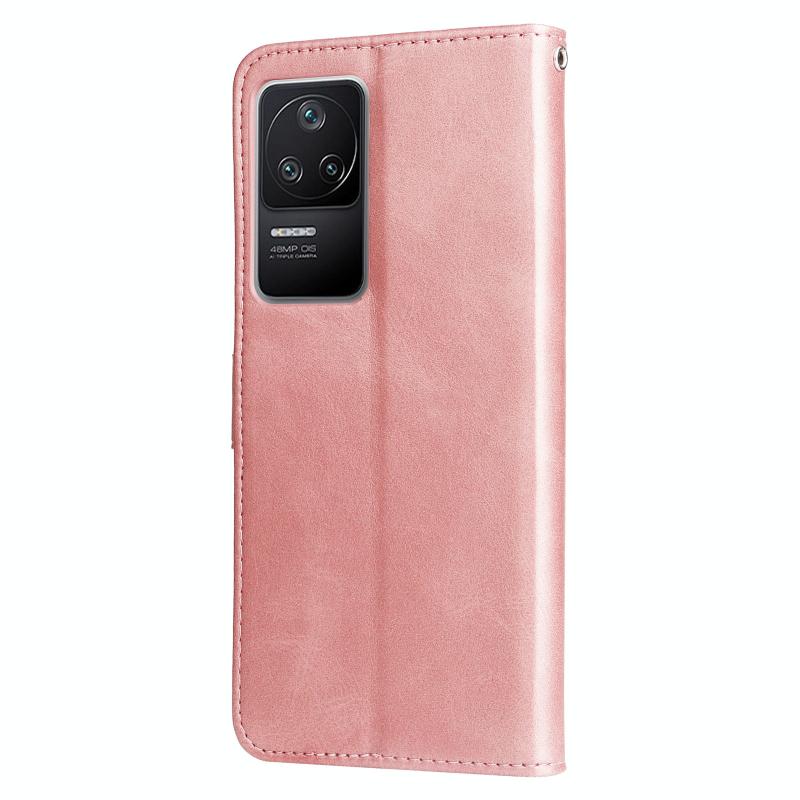 Για Xiaomi Redmi K40S / Poco F4 Δερμάτινη Θήκη Flip με Φερμουάρ & Υφή Μοσχαριού (Ροζ Χρυσό)