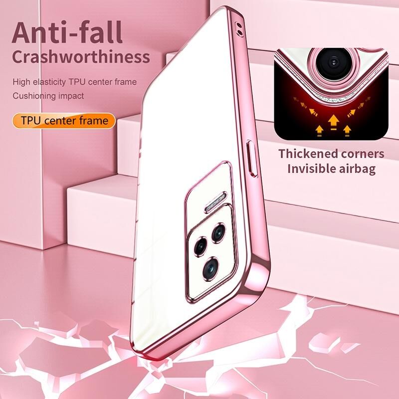 Για Xiaomi Redmi K40S / Poco F4 Διαφανής επιμετάλλωση λεπτή τρύπα τηλέφωνο υπόθεση (ροζ)