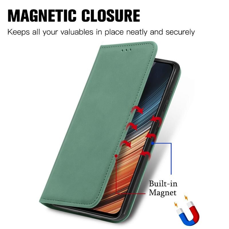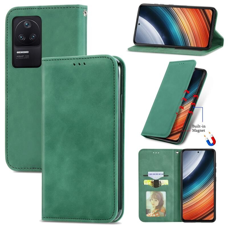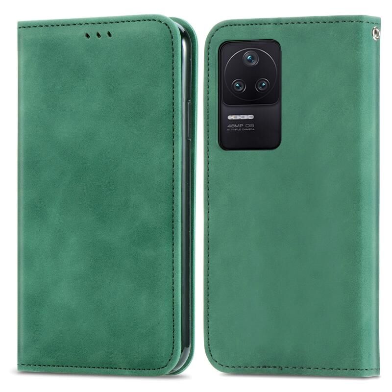 Για Xiaomi Redmi K40S Ρετρό δέρμα αίσθηση μαγνητικό δέρμα τηλέφωνο υπόθεση (πράσινο)