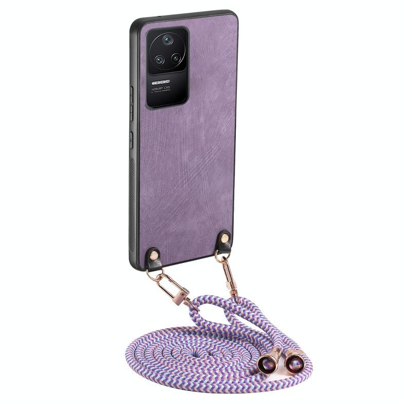 Για Xiaomi Redmi K40S εκλεκτής ποιότητας δέρμα PC πίσω κάλυμμα τηλέφωνο υπόθεση με λουράκι σταυρού (μωβ)