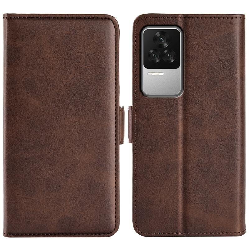 Για Xiaomi Redmi K50 διπλής όψης μαγνητική πόρπη δερμάτινη θήκη τηλεφώνου (καφέ)