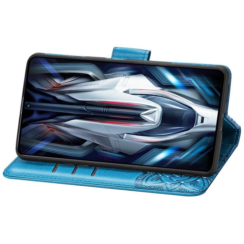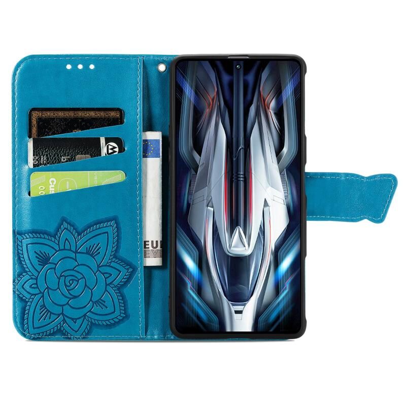 Για Xiaomi Redmi K50 Gaming πεταλούδα αγάπη λουλούδι ανάγλυφο οριζόντια Flip δέρμα τηλέφωνο υπόθεση (μπλε)