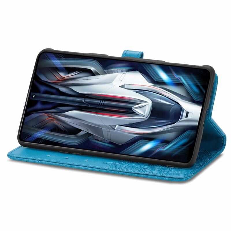 Για Xiaomi Redmi K50 Gaming Mandala λουλούδι ανάγλυφο οριζόντια Flip δέρμα τηλέφωνο υπόθεση (μπλε)