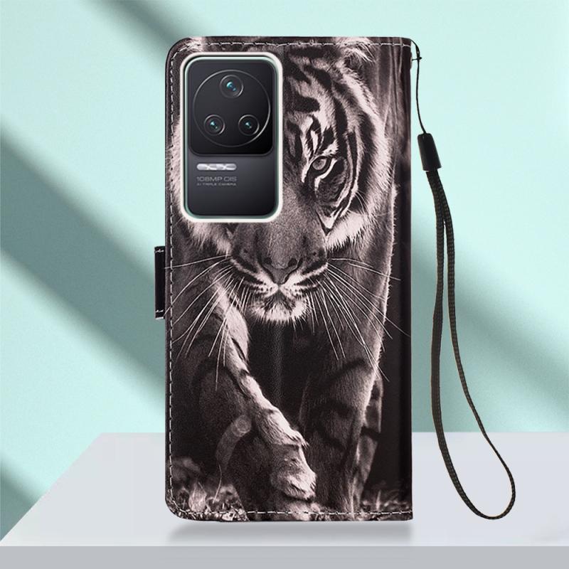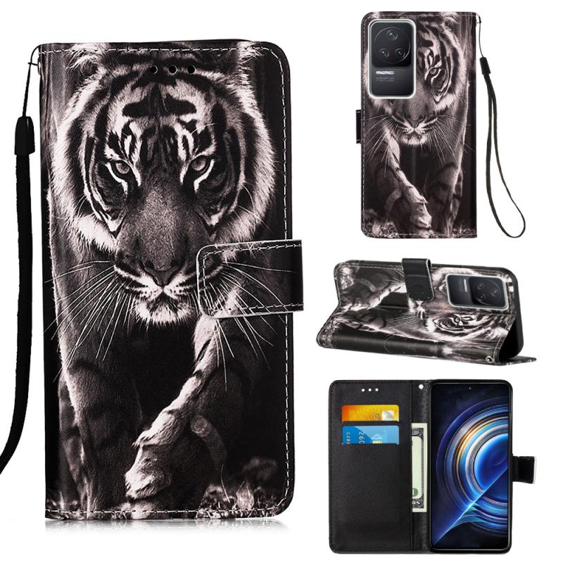 For Xiaomi Redmi K50 / K50 Pro Colored Drawing Plain Weave Leather Phone Case(Black White Tiger)