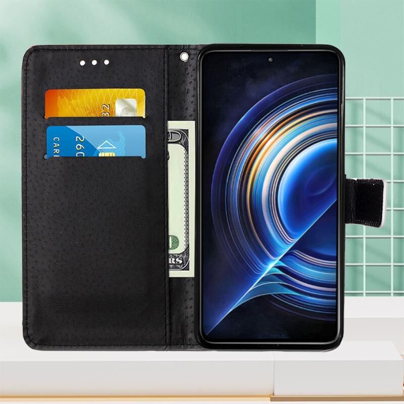 Θήκη τηλεφώνου από δέρμα με απλή ύφανση και έγχρωμη σχεδίαση για Xiaomi Redmi K50 / K50 Pro (Μαύρη Τίγρη)