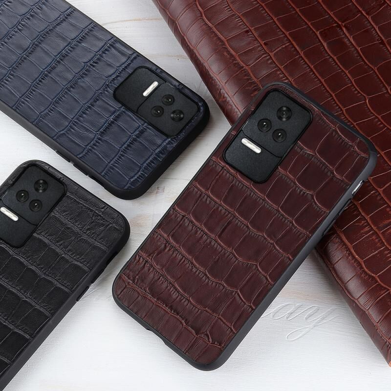 Θήκη τηλεφώνου από γνήσιο δέρμα με υφή κροκόδειλου και λεπτές οπές για Xiaomi Redmi K50/K50 Pro (Μαύρο)
