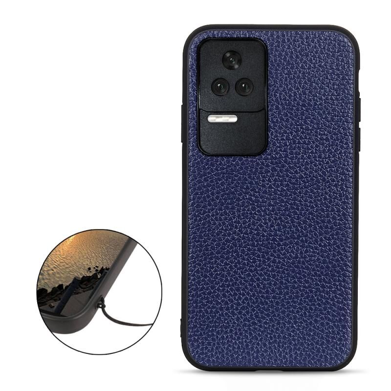 Θήκη τηλεφώνου από γνήσιο δέρμα με υφή λύτσι για Xiaomi Redmi K50/K50 Pro, έκδοση με λεπτή οπή (Μπλε)