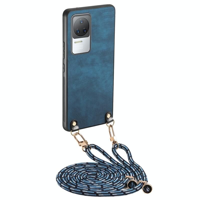 Για Xiaomi Redmi K50 / K50 Pro εκλεκτής ποιότητας δέρμα PC πίσω κάλυμμα τηλέφωνο υπόθεση με λουράκι σταυρού (μπλε)