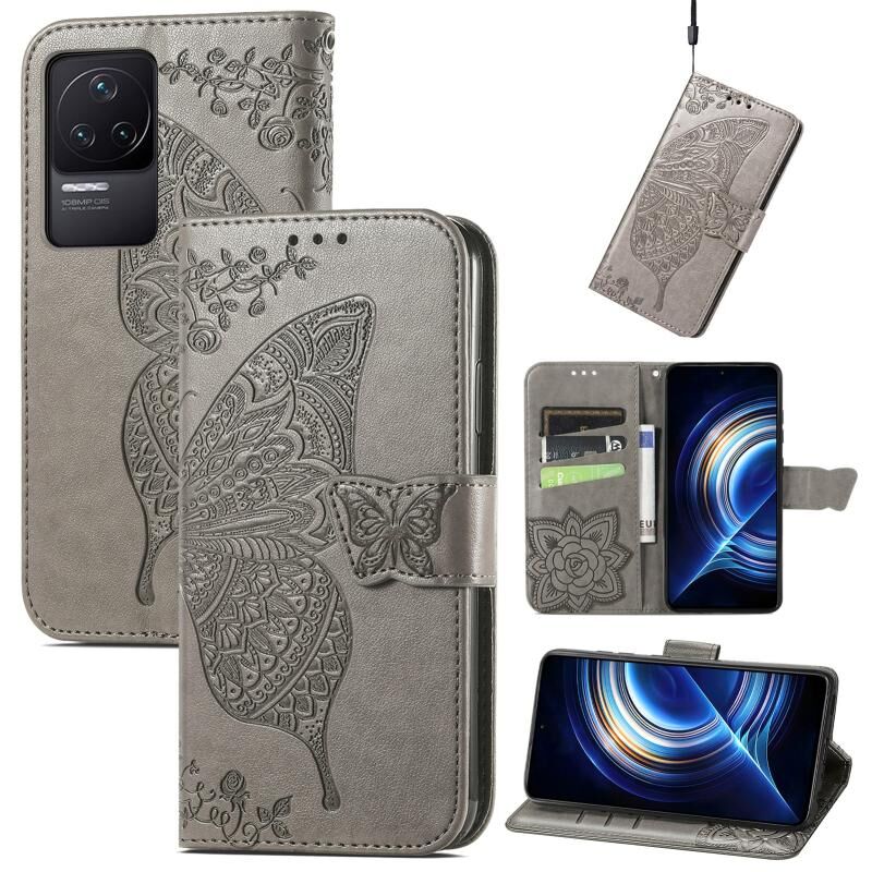 Θήκη τηλεφώνου από δέρμα με ανάγλυφο σχέδιο πεταλούδας και λουλουδιών για Xiaomi Redmi K50 Pro (Μαύρο)
