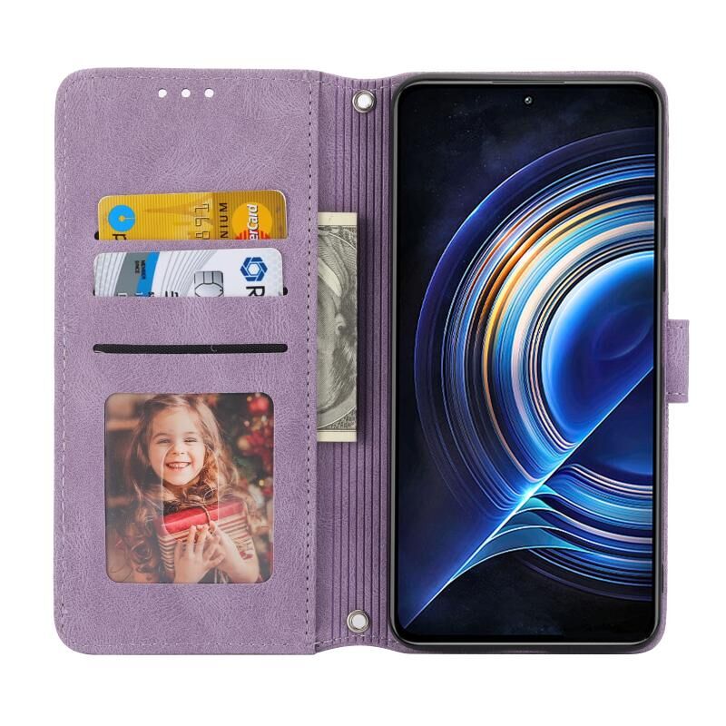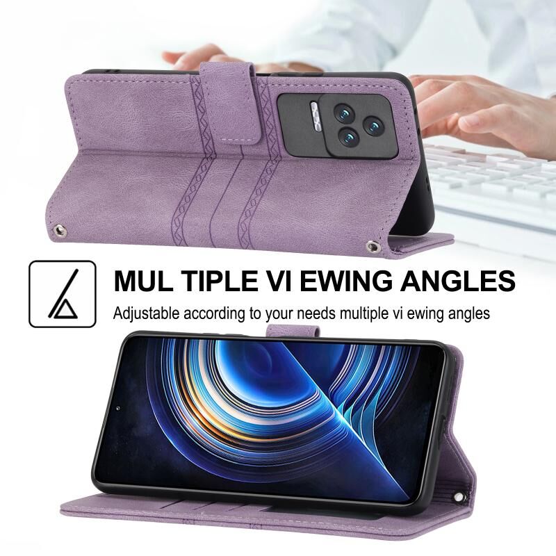 Για Xiaomi Redmi K50 Pro ανάγλυφο ριγέ μαγνητική πόρπη οριζόντια Flip τηλέφωνο δερμάτινη θήκη (μωβ)