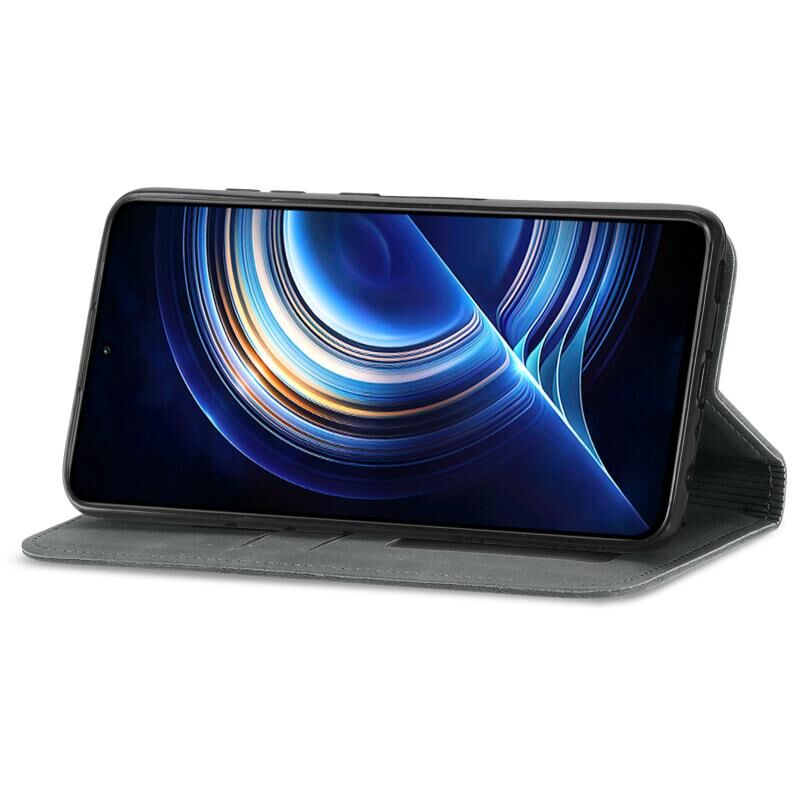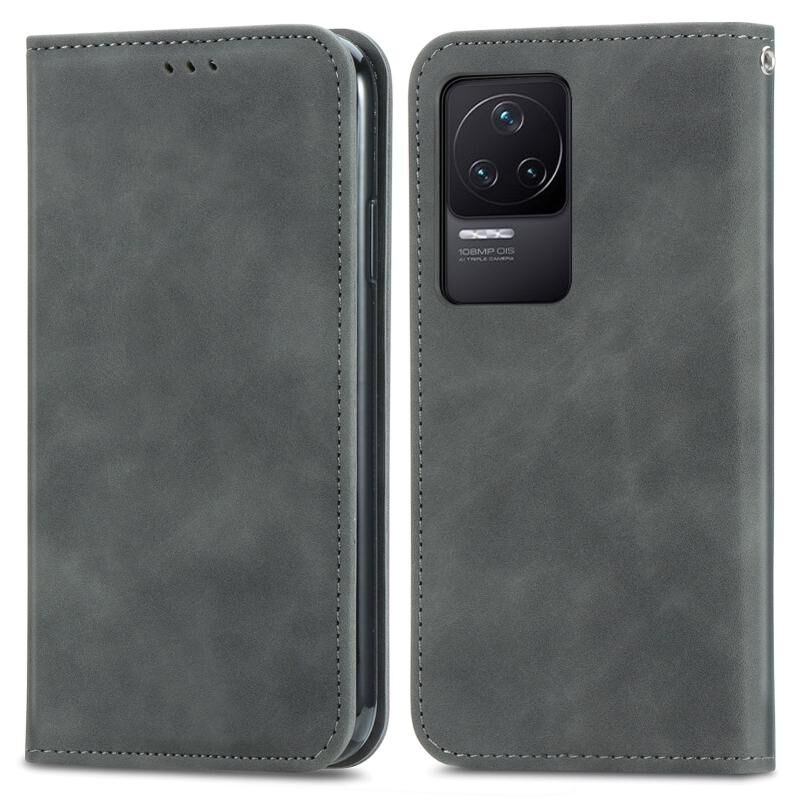 Για Xiaomi Redmi K50 Pro Ρετρό δέρμα αίσθηση μαγνητική Flip δέρμα τηλέφωνο υπόθεση (γκρι)