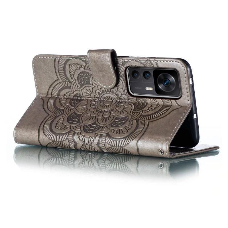 Για Xiaomi Redmi K50 Ultra Sun Mandala ανάγλυφο μοτίβο τηλέφωνο δερμάτινη θήκη (Γκρι)