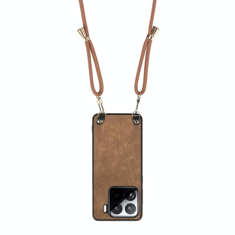 Για Xiaomi Redmi K50 Ultra εκλεκτής ποιότητας δέρμα PC πίσω κάλυμμα τηλέφωνο υπόθεση με λουράκι σταυρού (καφέ)