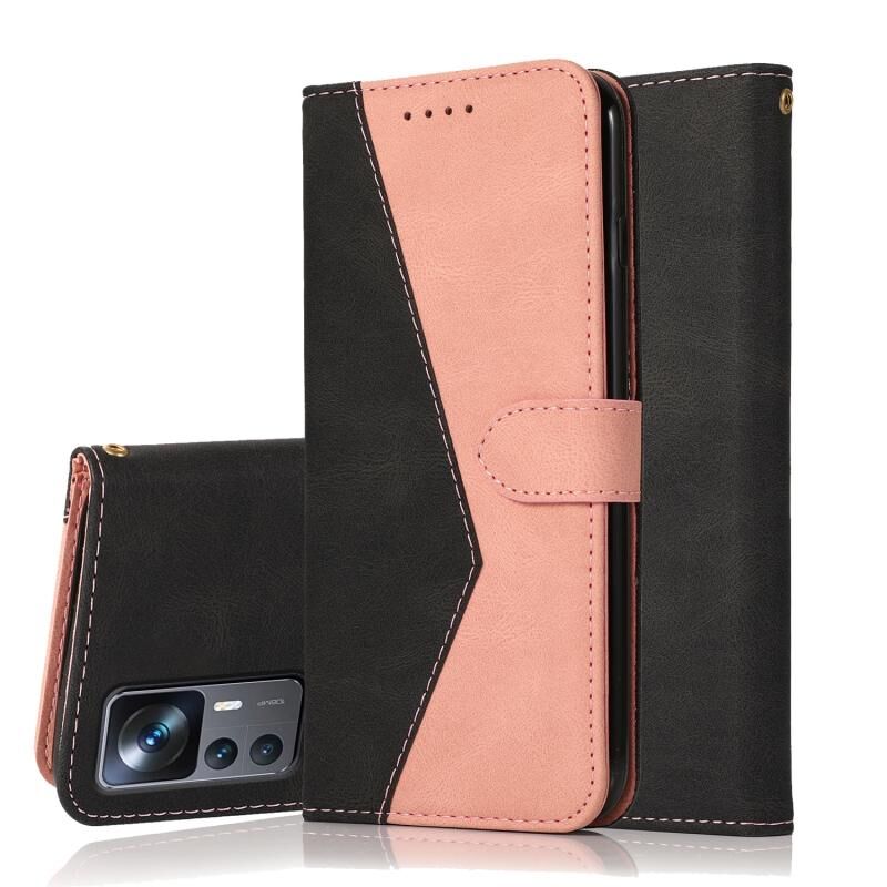 Για Xiaomi Redmi K50 Ultra / Xiaomi 12T Pro / 12T διπλού χρώματος ραφή δερμάτινη θήκη τηλεφώνου (μαύρο ροζ χρυσό)