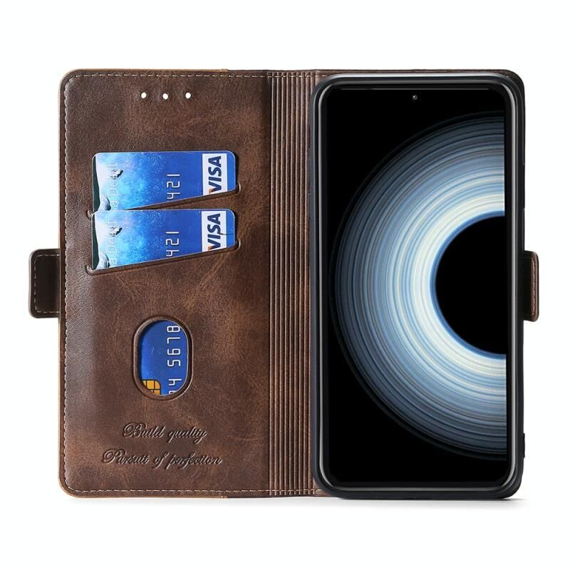 Για Xiaomi Redmi K50 Ultra / Xiaomi 12T / Xiaomi 12T Pro αντίθεση χρώμα πλευρά πόρπη δερμάτινη θήκη τηλεφώνου (Σκούρο καφέ και χρυσό)