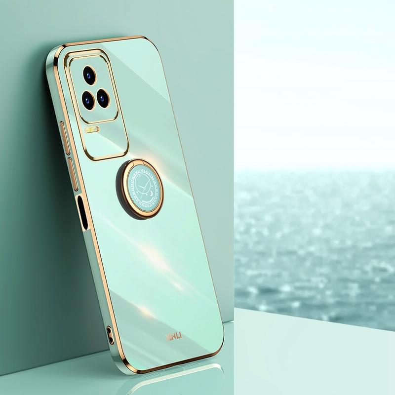 Θήκη τηλεφώνου Xiaomi Redmi K50 XINLI με ευθείες άκρες, ηλεκτρολυτική επίστρωση TPU με δακτύλιο στήριξης (Μέντας πράσινο)