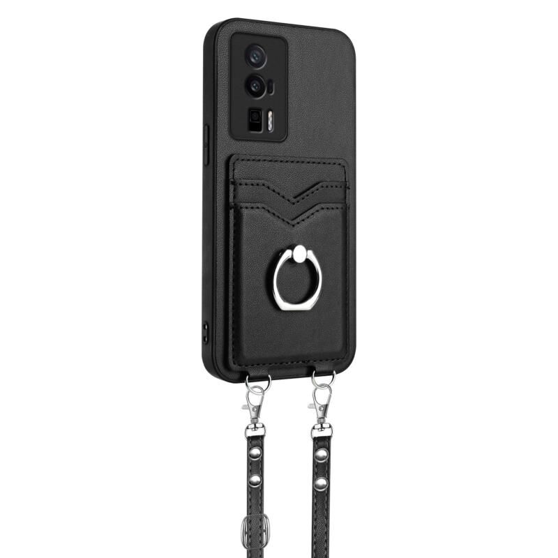 Για Xiaomi Redmi K60 Champion Edition R20 Crossbody σχοινί δαχτυλίδι κάρτας κάτοχος υπόθεση τηλεφώνου (μαύρο)