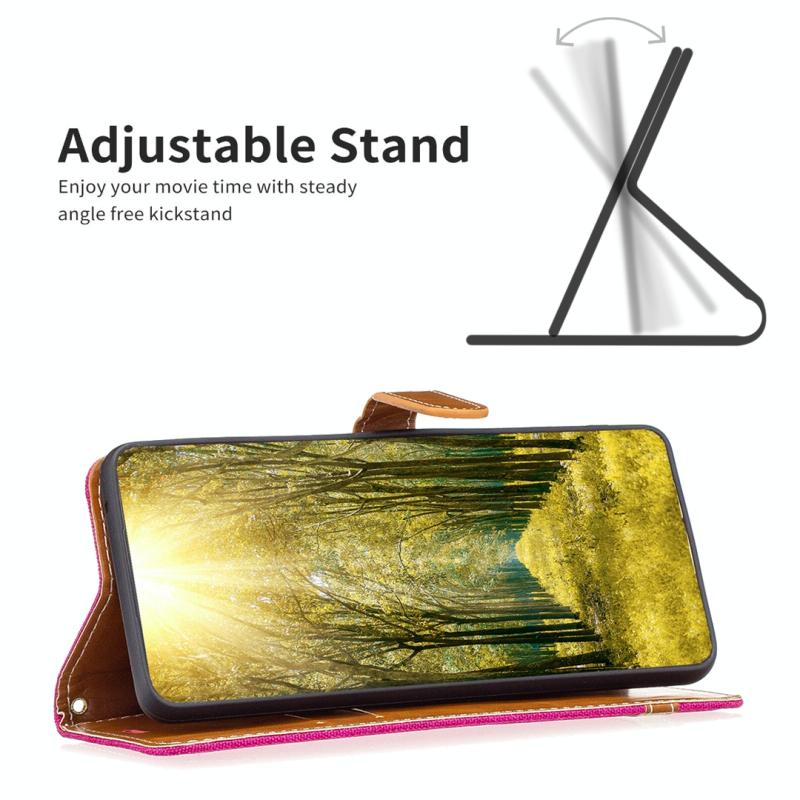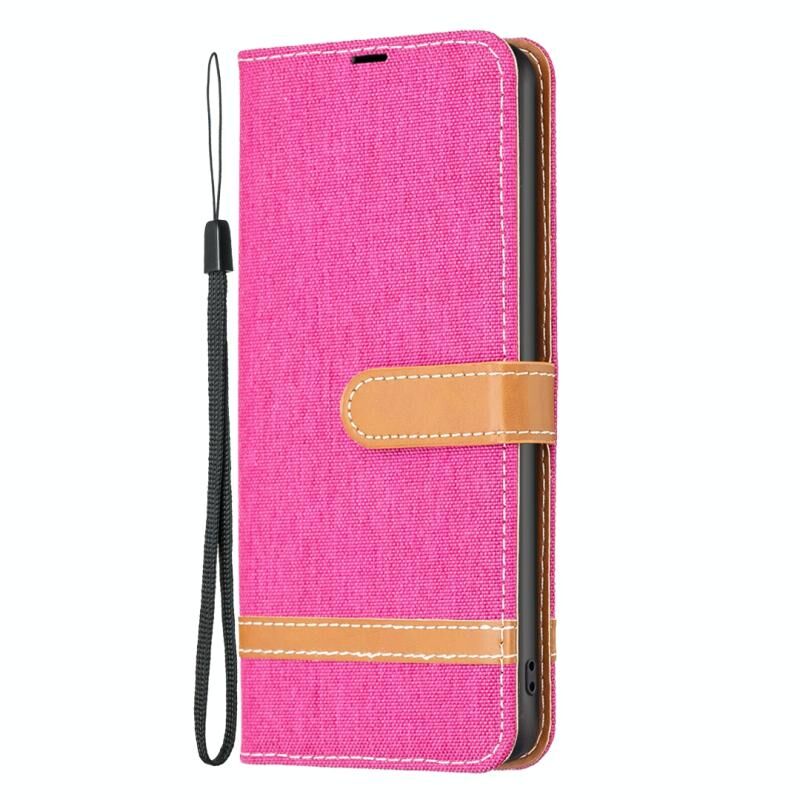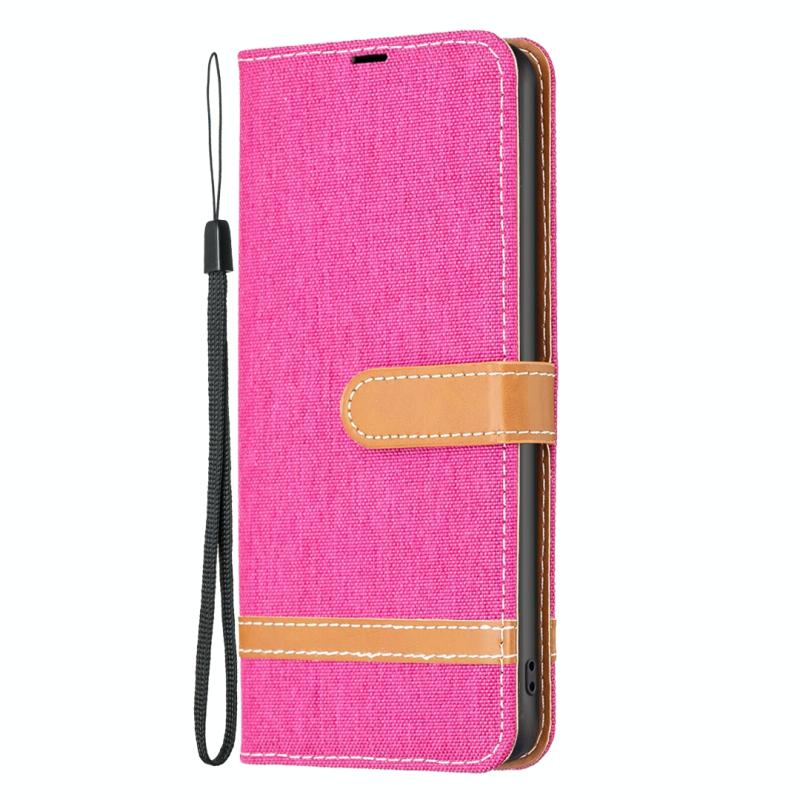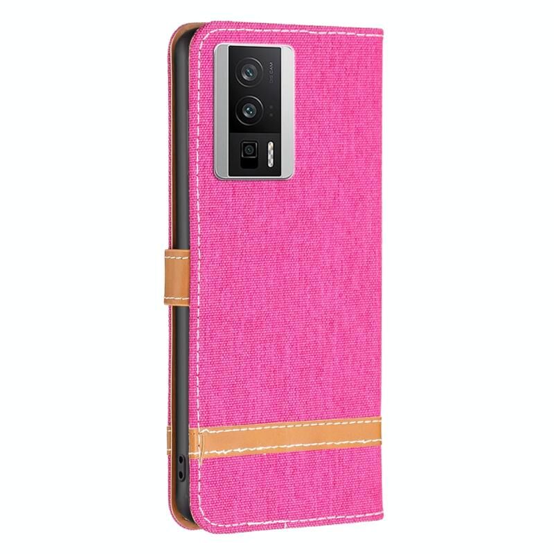 Θήκη τηλεφώνου από δέρμα με υφή τζιν και χρωματικό σχέδιο για Xiaomi Rose Redmi K60 / K60 Pro (Ροζέ κόκκινο)