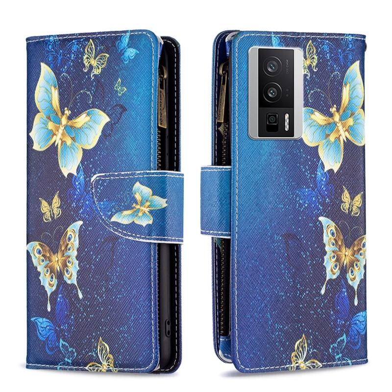 Θήκη τηλεφώνου από δέρμα με φερμουάρ και πολύχρωμο σχέδιο για Xiaomi Redmi K60 / K60 Pro (Μωβ Πεταλούδα)