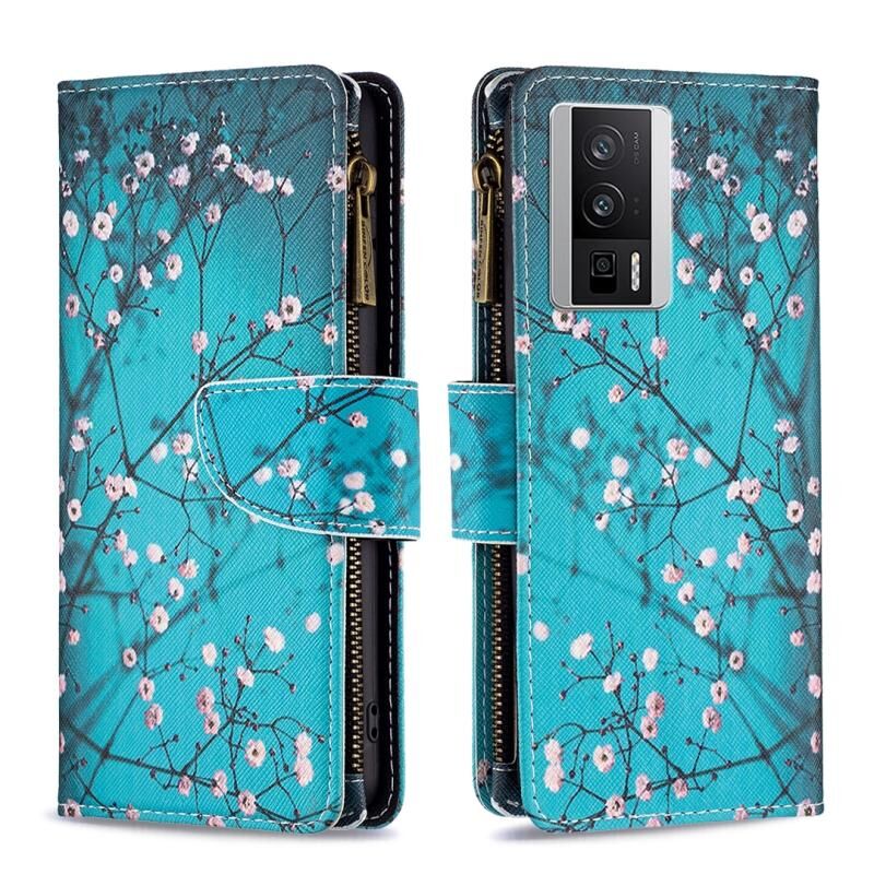 Θήκη τηλεφώνου από δέρμα με φερμουάρ και πολύχρωμο σχέδιο για Xiaomi Redmi K60 / K60 Pro (Λουλούδι Δαμασκηνιάς)