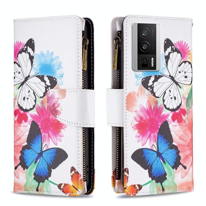 Θήκη τηλεφώνου από δέρμα με φερμουάρ και πολύχρωμο σχέδιο για Xiaomi Redmi K60 / K60 Pro (Δύο Πεταλούδες)